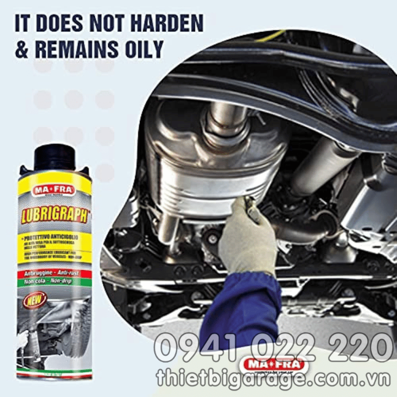 Một trong những sản phẩm hóa chất bảo dưỡng gầm được ưa chuộng hiện nay chính là LUBRIGRAPH 600 ML – đến từ thương hiệu danh tiếng Mafra (Italy). Cùng thietbigarage.com.vn tìm hiểu chi tiết công dụng, tính năng và lý do vì sao sản phẩm này là lựa chọn hàng đầu của các garage chuyên nghiệp.